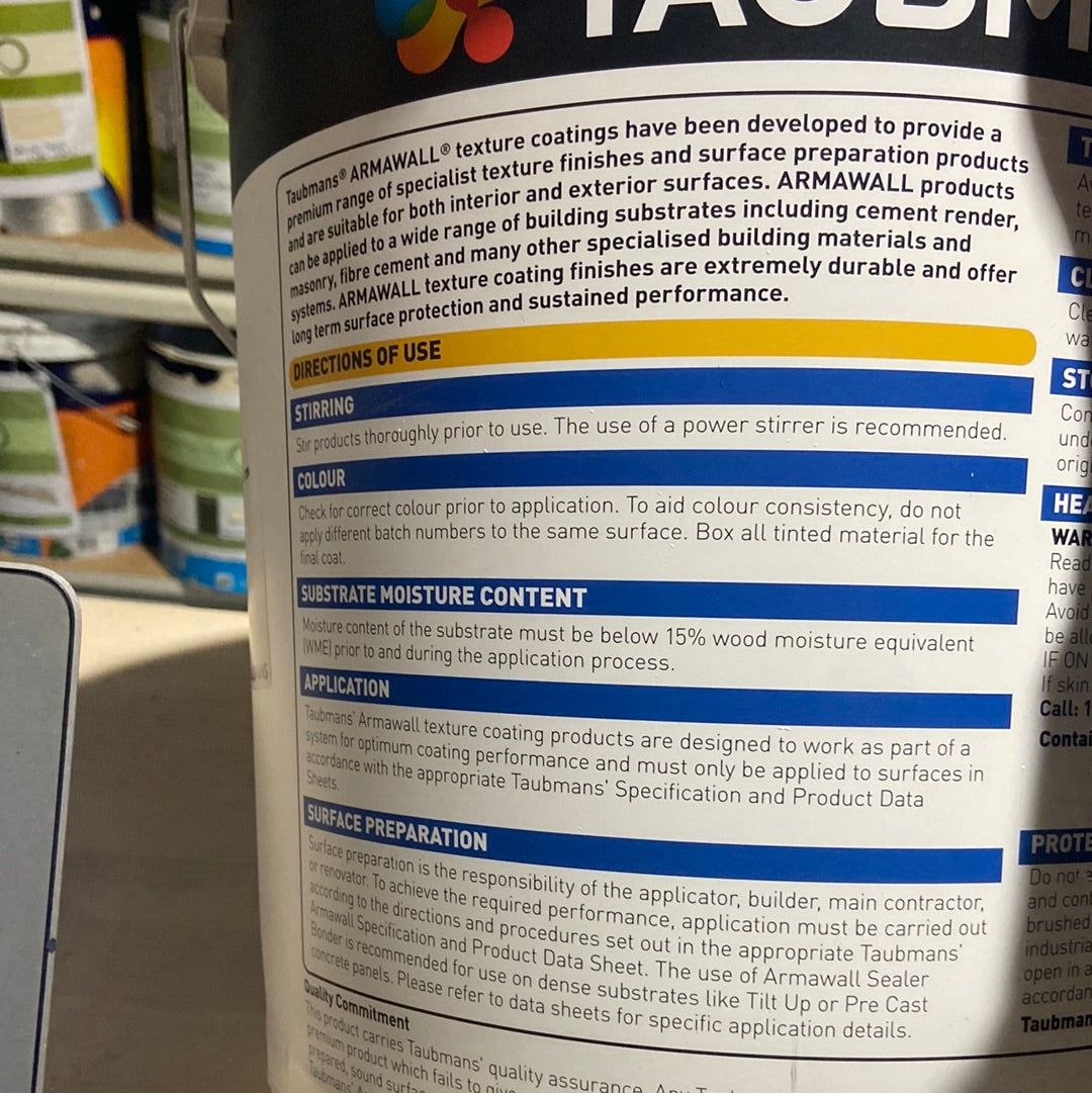 Paint brand: Taubmans Texture Cover Armawall Armashield