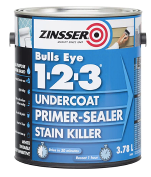 Interior/Exterior Zinsser Bulls Eye 1-2-3 Primer Sealer Stain Blocker Undercoat Prep Coat WHITES 2.4L - Colour: White