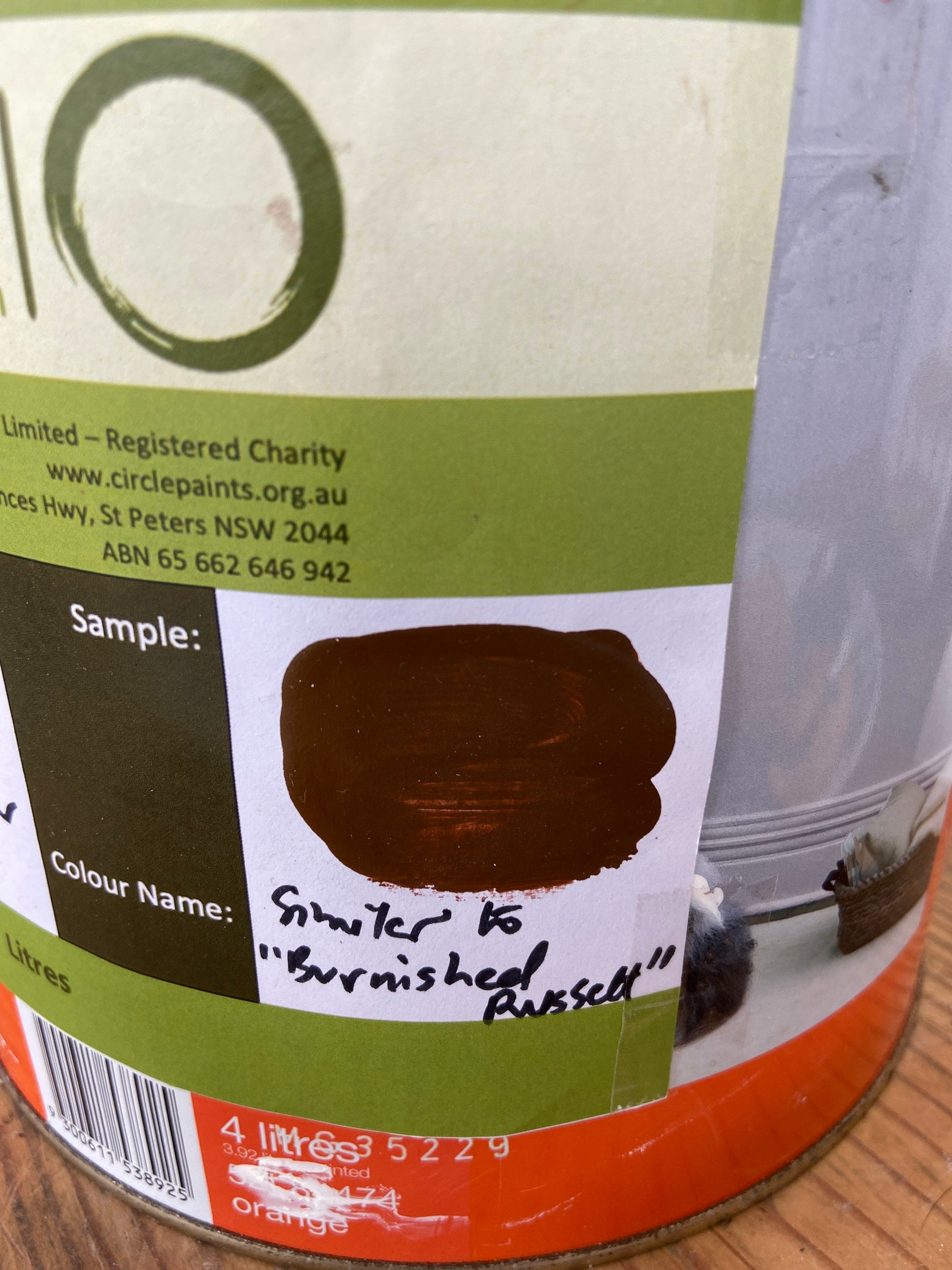 Dulux Colour: Burnished Russet (closest match but darker - see swatch of colour)
