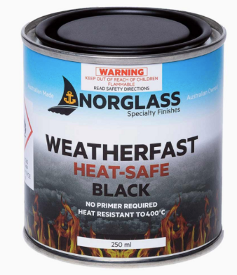 Norglass Weatherfast Heat-Safe Gloss Enamel is a heat-resistant self priming paint that is suitable for areas that are subjected to heat. A heat resistant, self priming paint designed for use on metal surfaces which are subject to radiant heat.